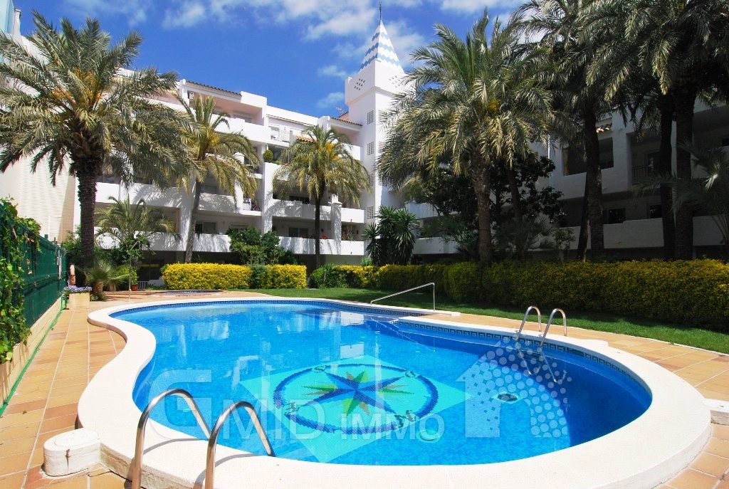 Residencia a unos 10 min de la playa, con piscina comunitaria y bonito jardín tropical.